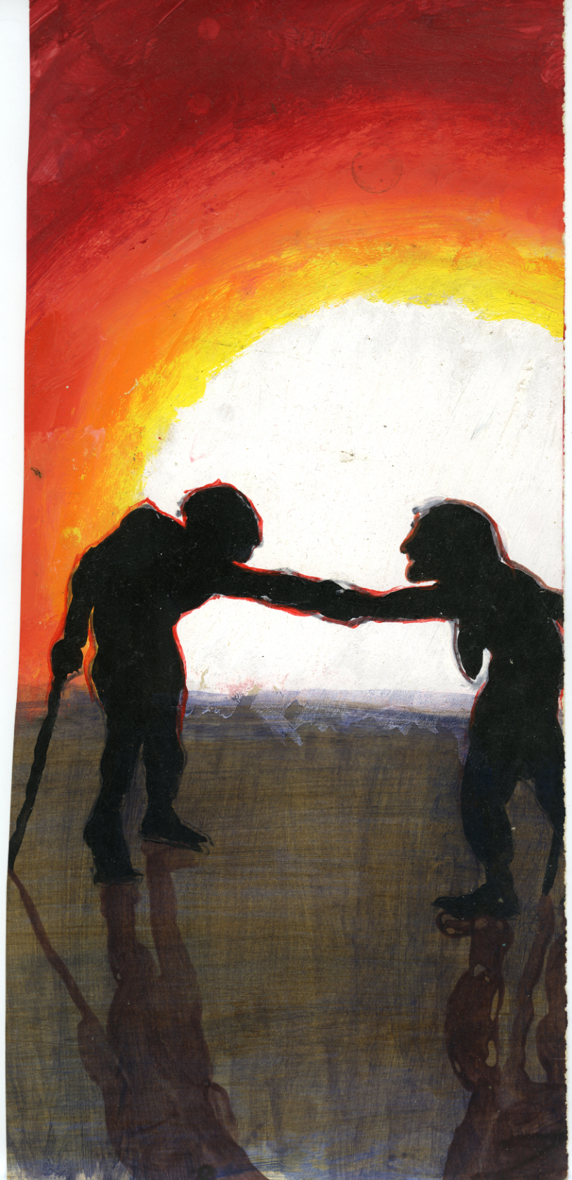 A cryla study of an elderly couple holding hands before the sunset 315 x 135 mm