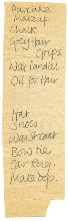 Eliza Massey’s shopping list for items to disguise Robert as an old man for the ‘Harry & Billy’ lecture