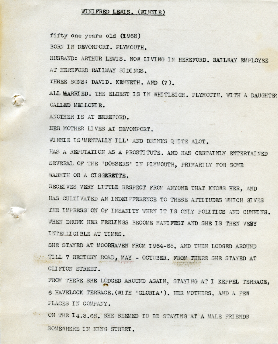 item 35 WINIFRED LEWIS. (WINNIE) 257 x 205 mm typed sheet