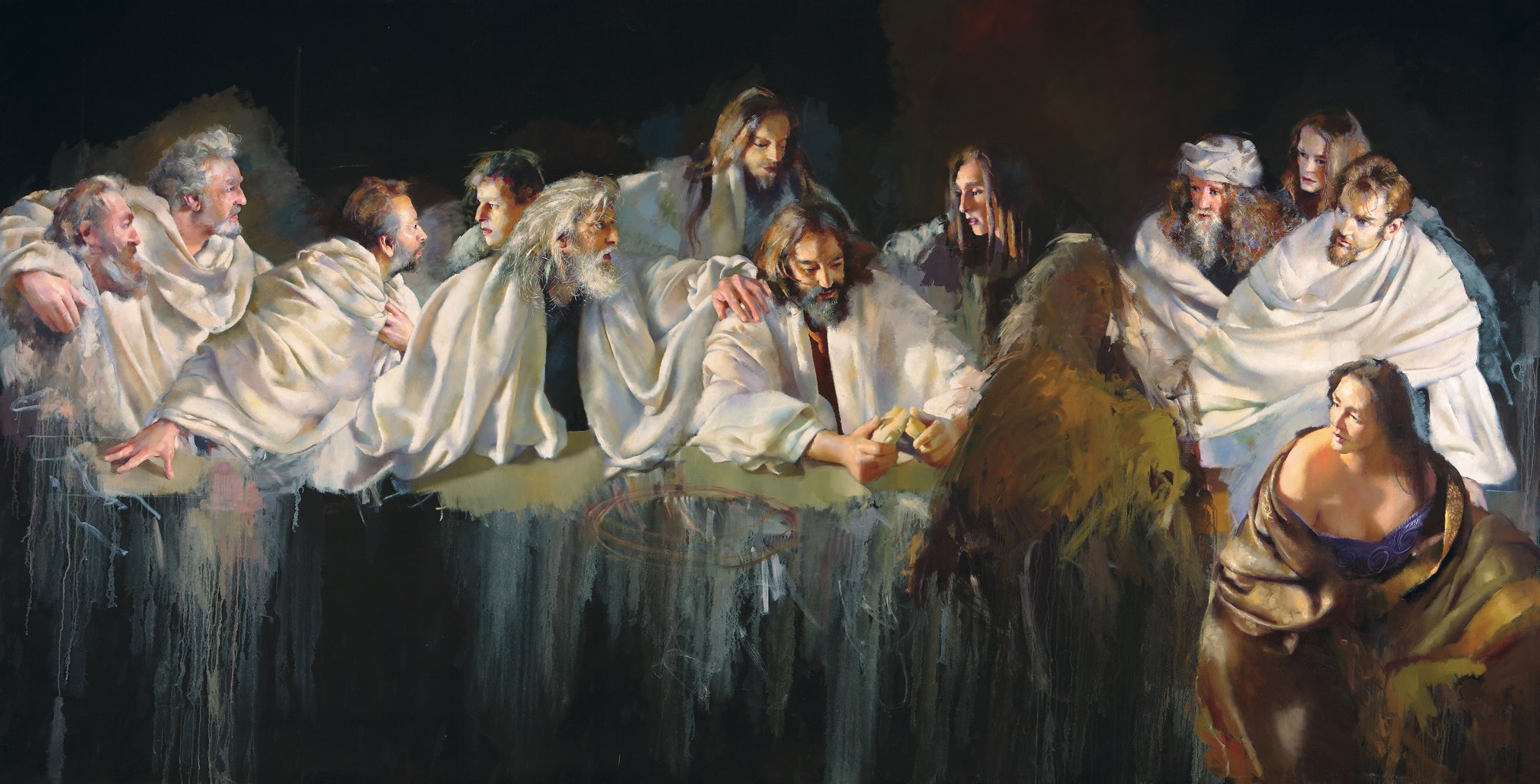 Lenkiewicz never completed his self-portrait - as Judas Iscariot - for this painting. It is one of a number of late works exploring religious iconography and was inspired by a perfromance of the Harrison Birtwhistle opera The Last Supper.