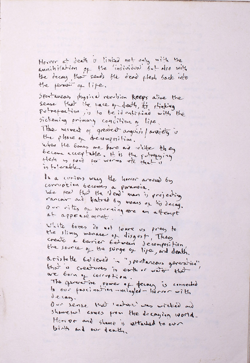 Horror at death is linked not only with the annihilation of the ‘individual’ but also with the decay that sends the dead flesh back into the ferment of life.